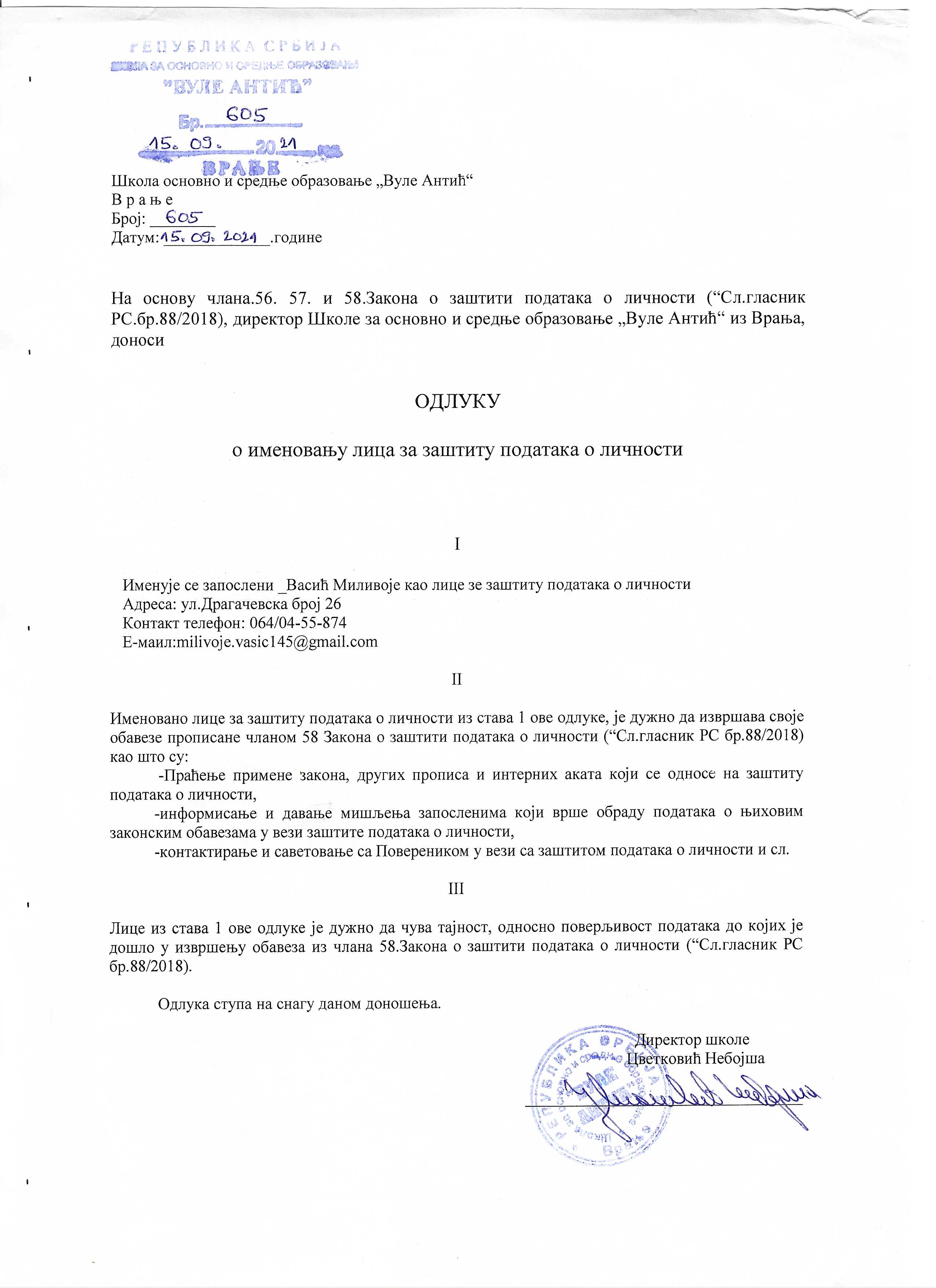 Odluka o imenovanju lica za zastitu podataka o ličnostiOdluka o imenovanju lica za zastitu podataka o ličnosti |