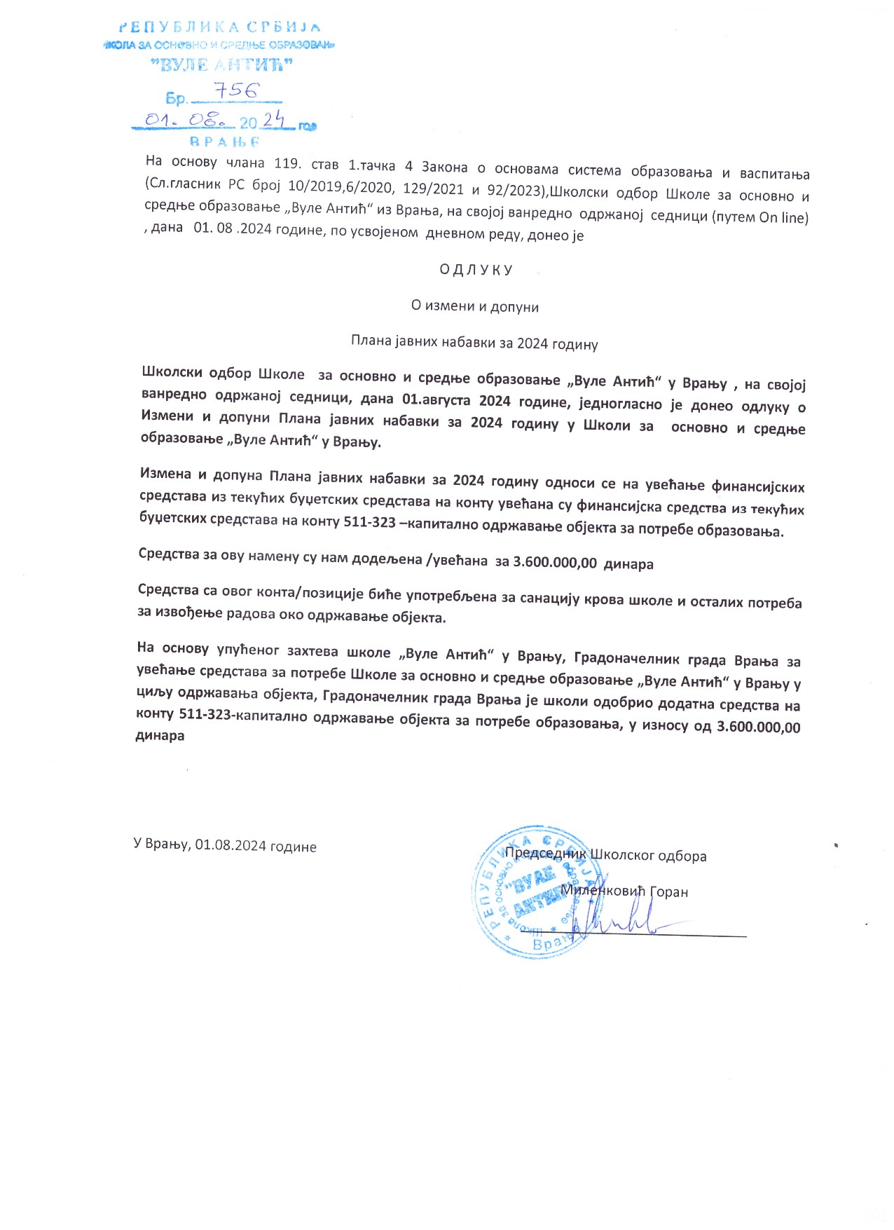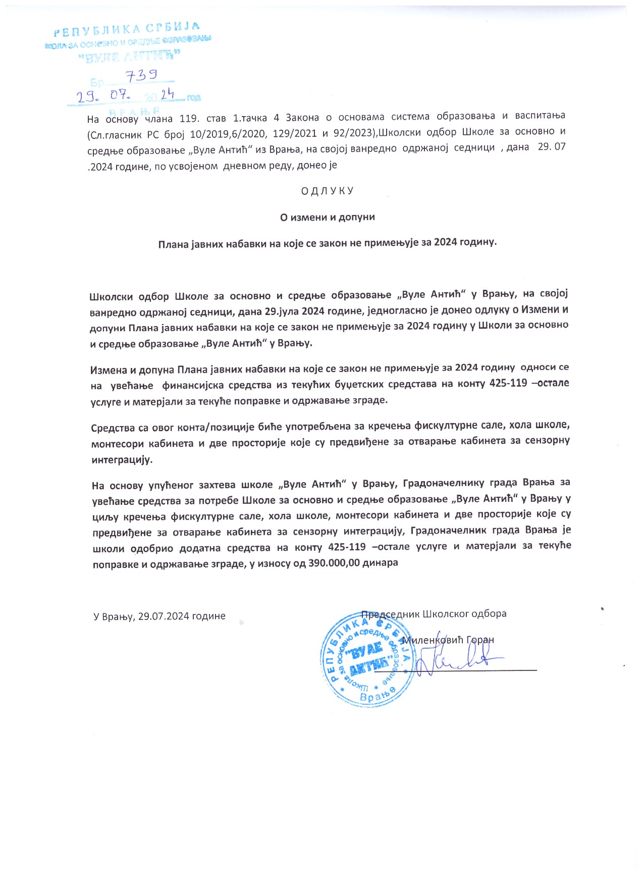 Odluka o izmeni i dopuni plana javnih nabavki 27.9.2024.Odluka o izmeni i dopuni plana javnih nabavki 27.9.2024. |