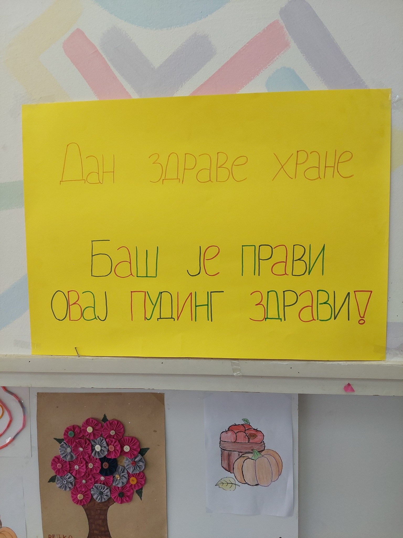 U organizaciji Stručnog veća defektologa oganizovano je obeležavanje Dana zdrave hrane. Ucenici nižih razreda su imali radionicu u kojoj su crtali, bojili i razvrstavali zdrave namirnice, dok su učenici viših razreda napravili zdrav puding od muskatne tikve i poslužili sve drugare u školi!